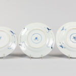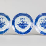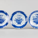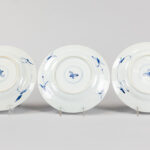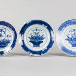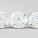 series of nine 17th/18th Cent. Chinese KangXi period plates in marked porcelain with a blue-white decor with jardinier