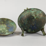 CHINA – HAN – DYNASTIE (206 voor – 220 na Christus) zgn “ding”, recipiënt op drie pootjes, in brons – hoogte : 13 cm met certificaat van Axel Vervoordt