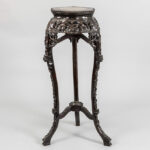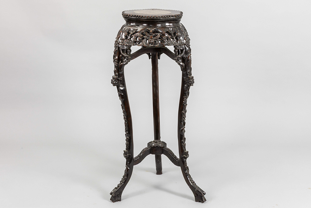 antique Chinese pedestal in richly carved rose-wood – with a marble inlaid top