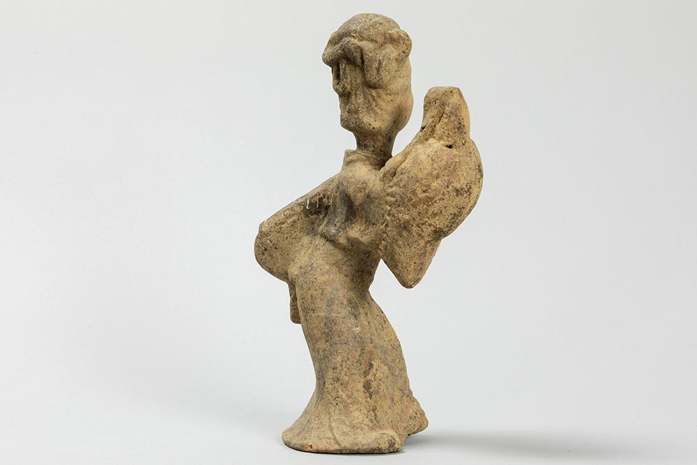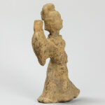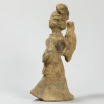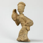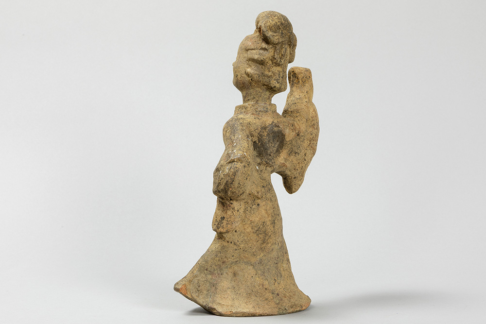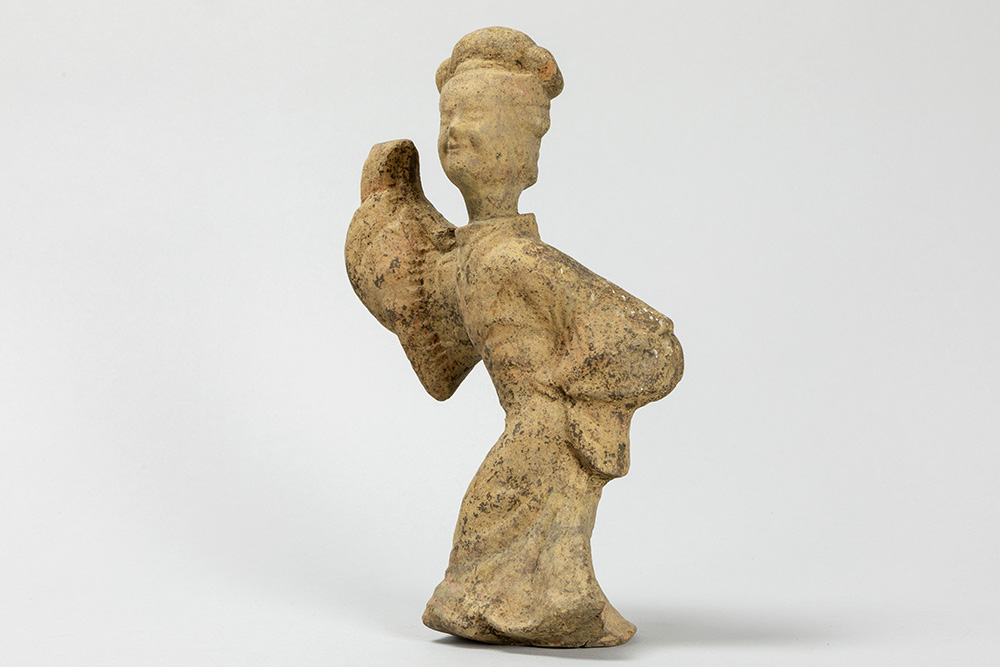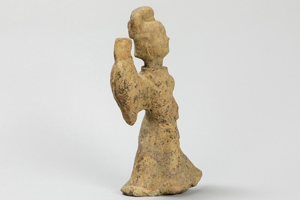 CHINA – HAN – DYNASTIE (206 voor – 220 na Christus) grafvondst in aardewerk : “Hoofse danseres” – hoogte : 26,5 cm met certificaat