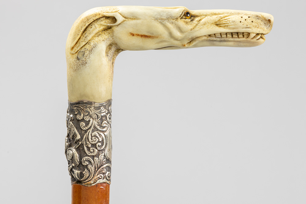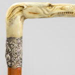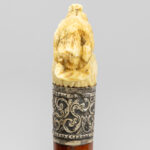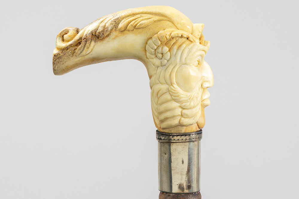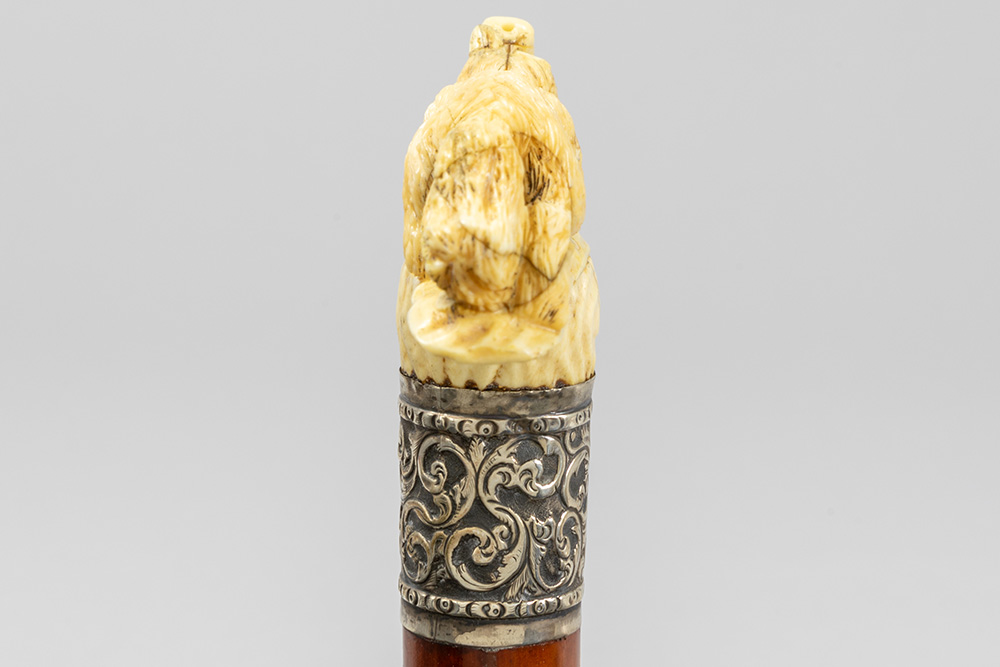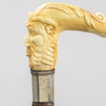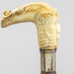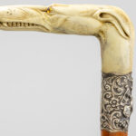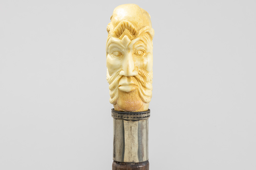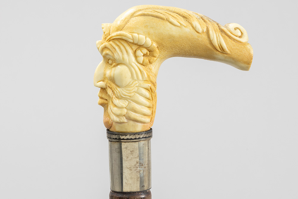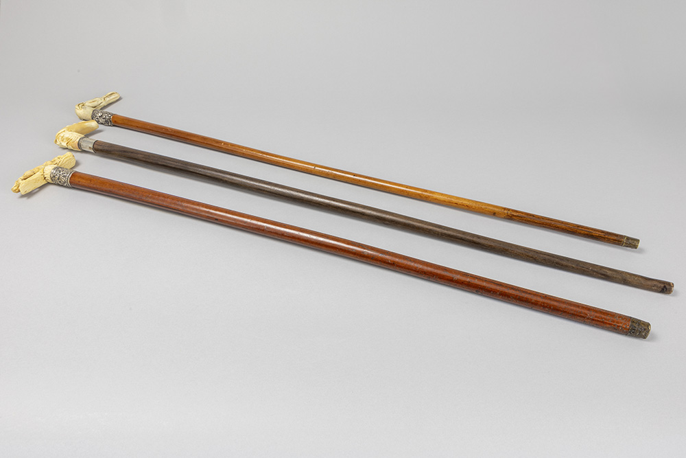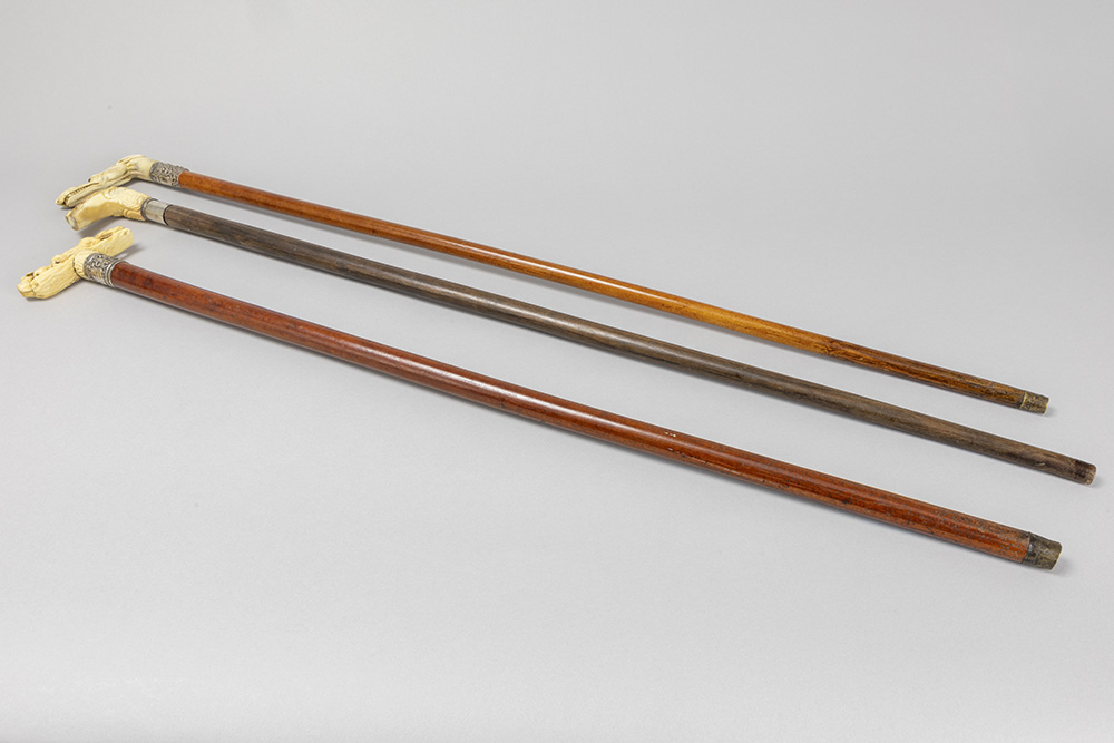 three ‘antique’ walking sticks with handle in sculpted bone