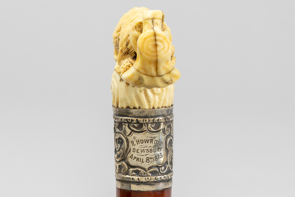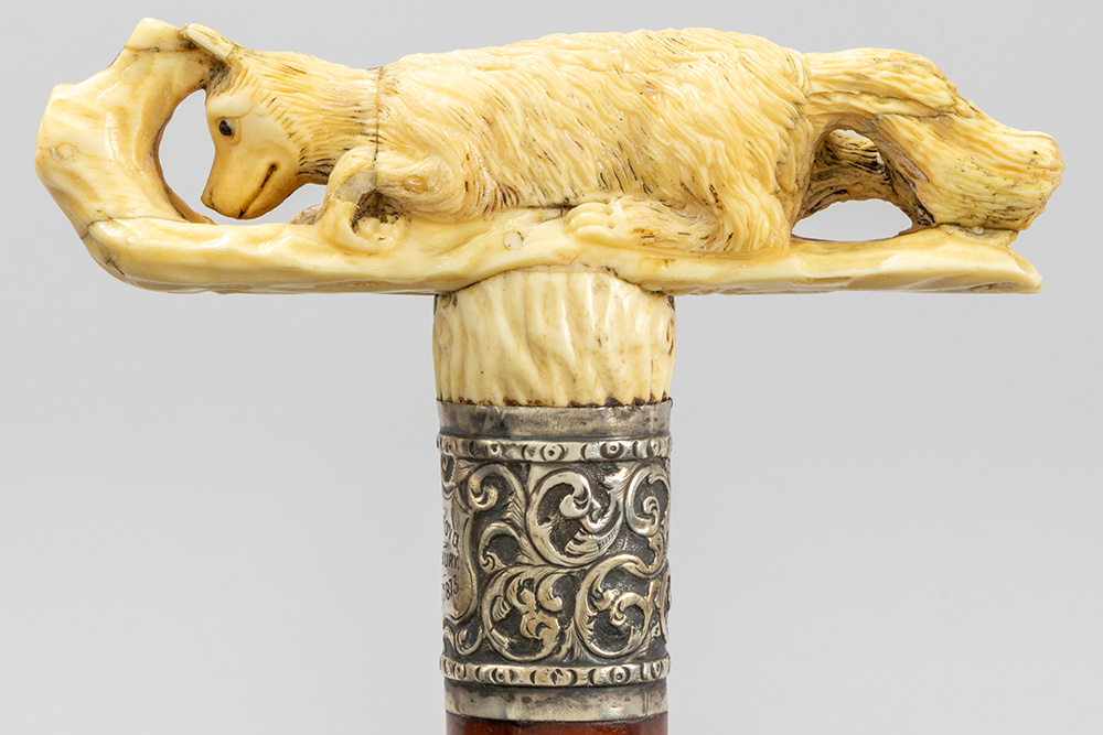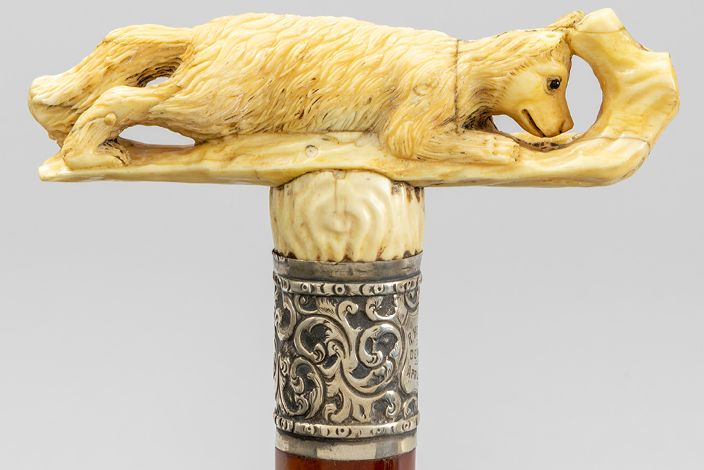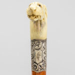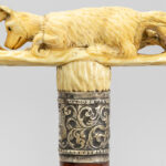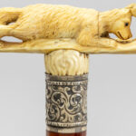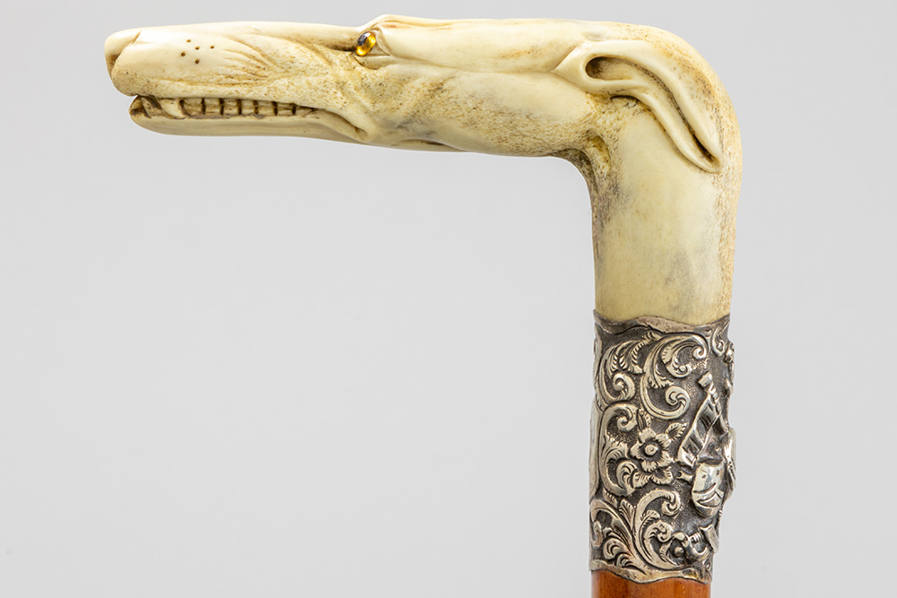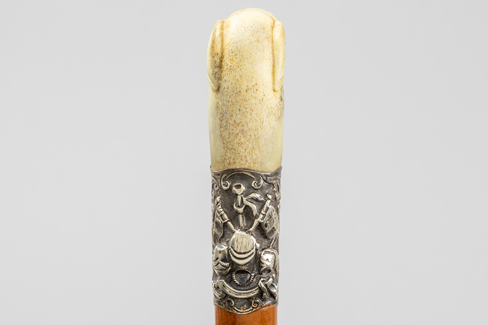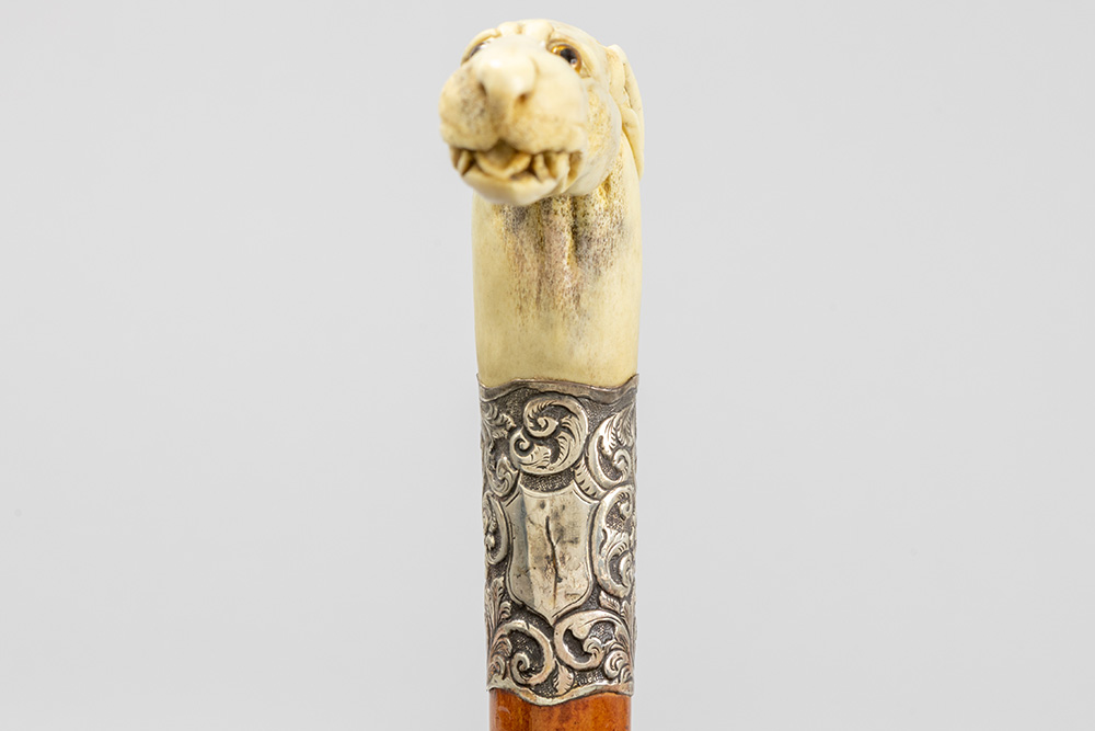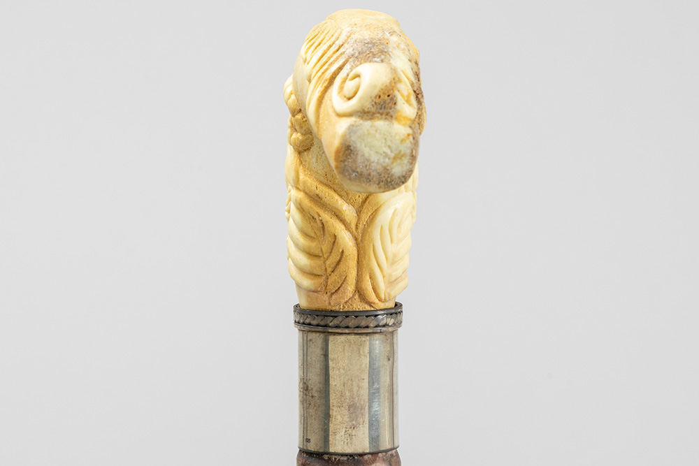 three ‘antique’ walking sticks with handle in sculpted bone