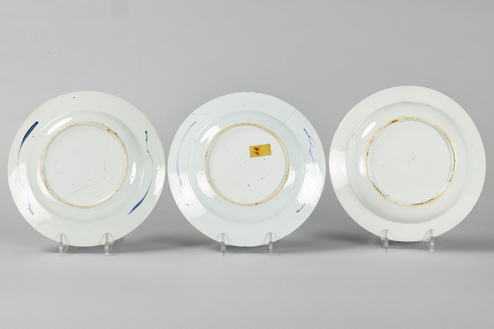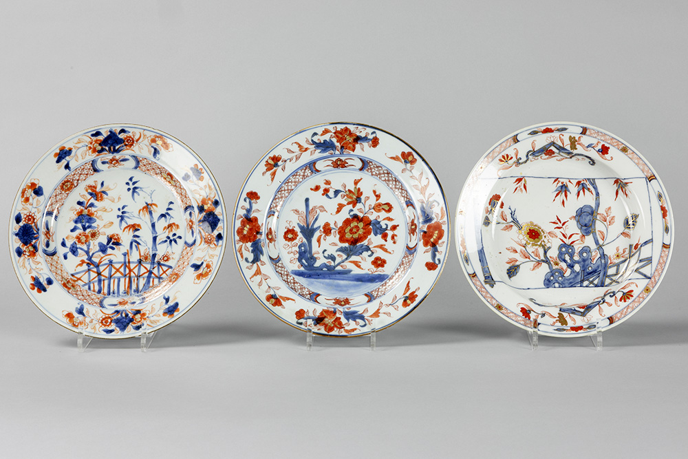 three Chinese plates in porcelain with Imari decors