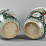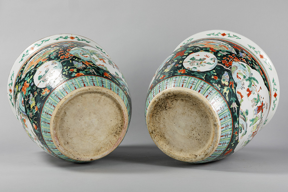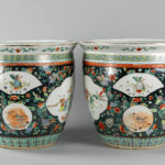 pair of Chinese jardiniers in porcelain with a ‘Famille Noire’ decor with polychrome scenes with figures
