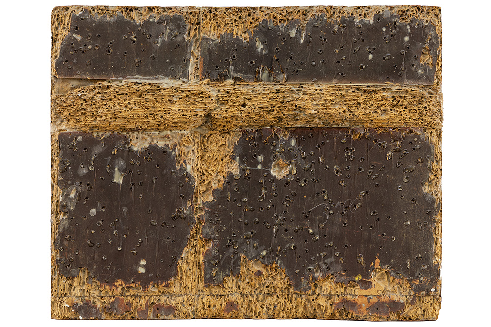 Antieke Russische ikoon met ingebracht bronzen kruisje : “Gekruisigde Christus” – 34 x 42
