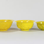 three 19th/20th Cent. Peking/Bejing glass bowls with decors on yellow