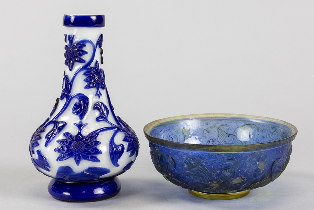 19th/20th Cent. Peking/Bejing glass vase and bowl
