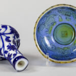 PEKING GLAS – 19°/20° EEUW lot met een wit en blauw vaasje (14 cm hoog) & een bowl (12 cm diameter) met goudvissendecor