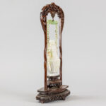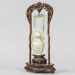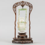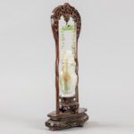 Chinese covered vase in jade, hanging in a wooden frame