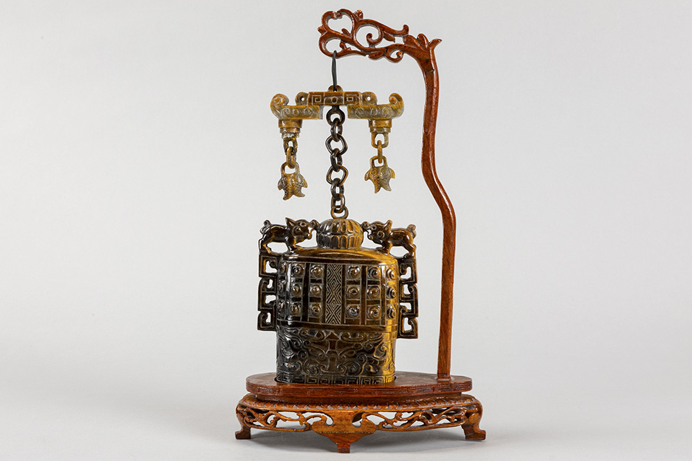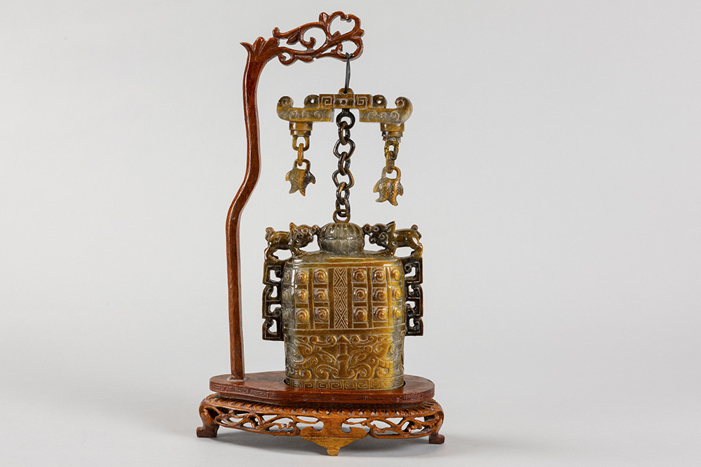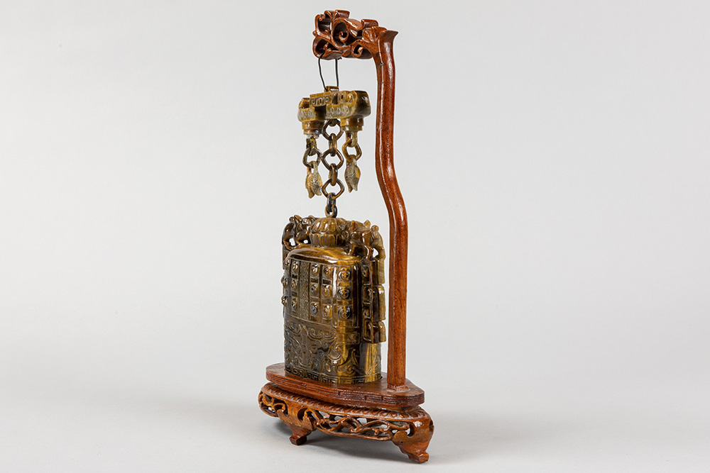 Chinees vaasje in tijgeroog met grepen in de vorm van varkentjes – hoogte : 29,5 cm