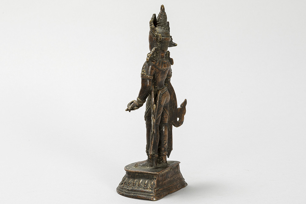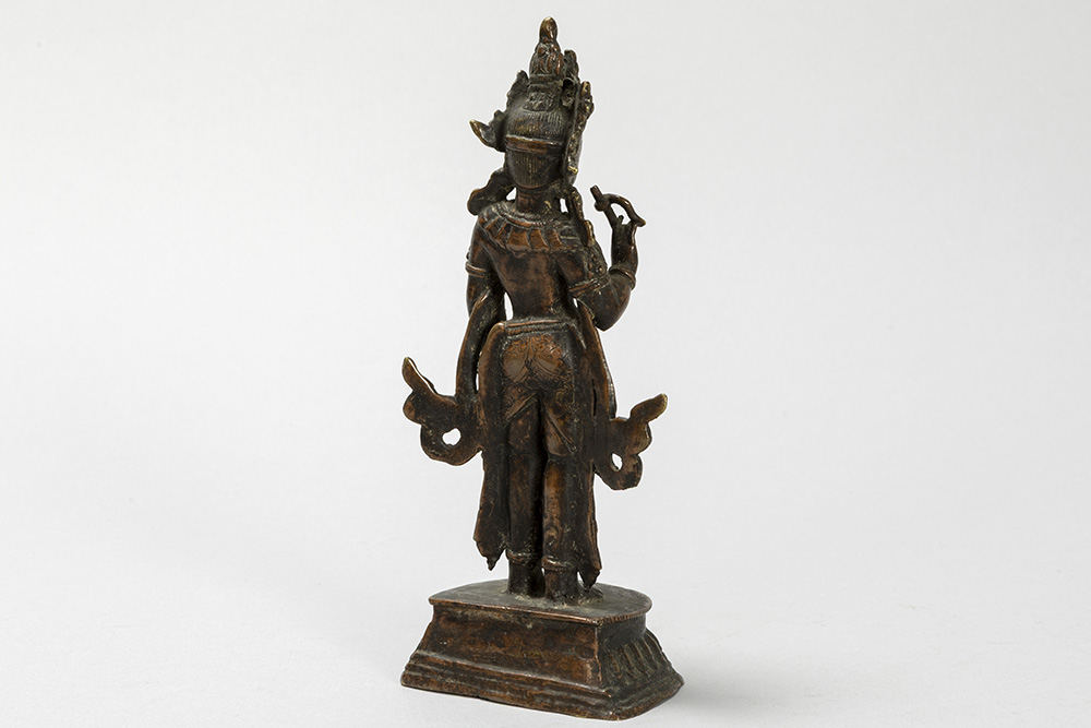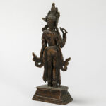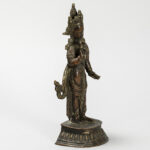Oude Nepalese sculptuur in brons met de voorstelling van een staande “boddhisattva” – hoogte : 18,5 cm
