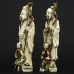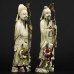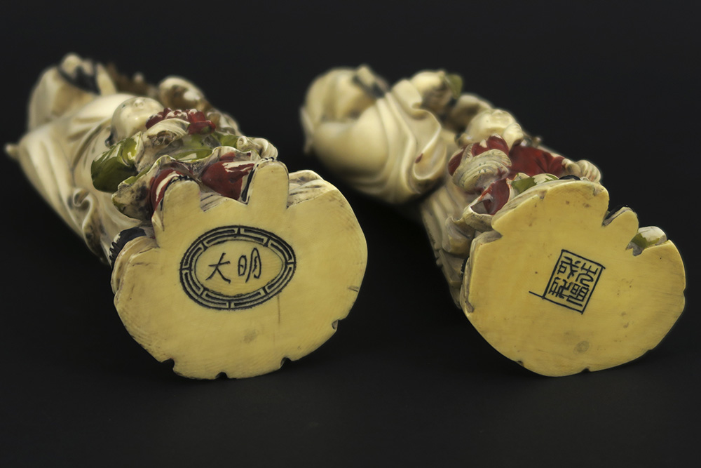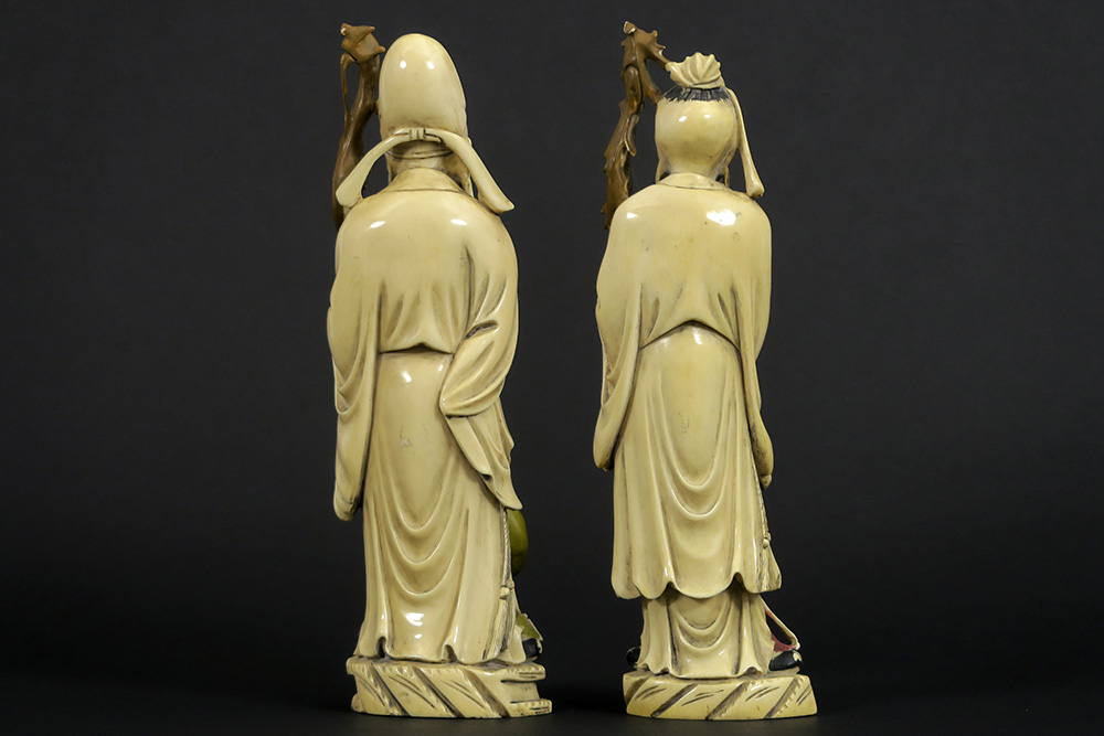pair of antique Chinese late Qing-period sculptures in partially polychromed ivory