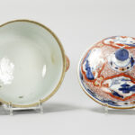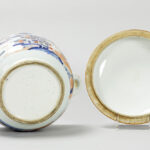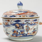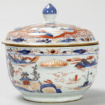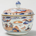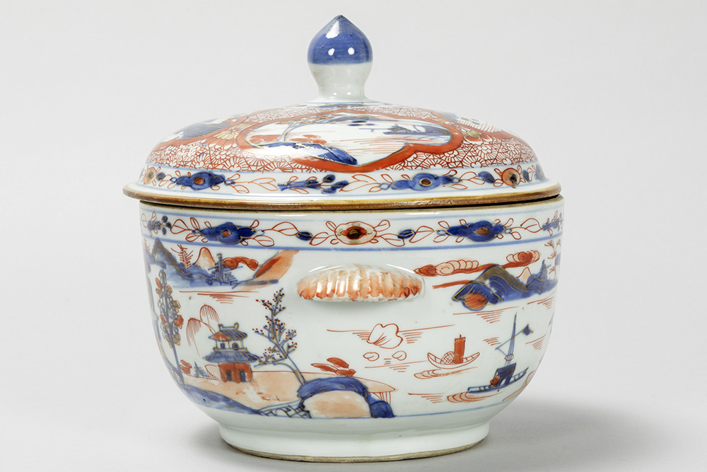 Achttiende eeuwse Chinese gedekselde terrine in porselein met een Imari-landschapsdecor – diameter : 19 cm