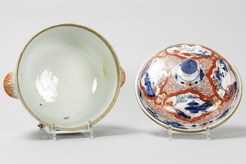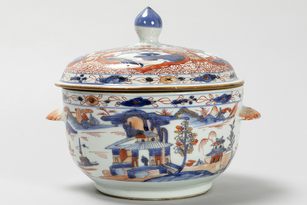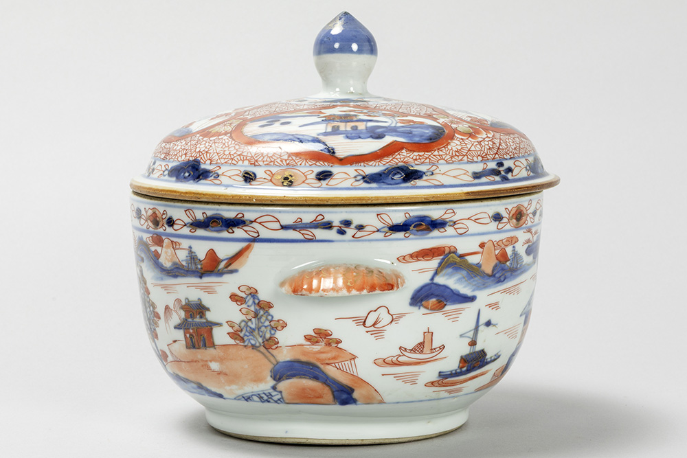 18th Cent. Chinese lidded tureen with an Imari decor with landscape