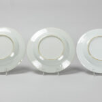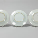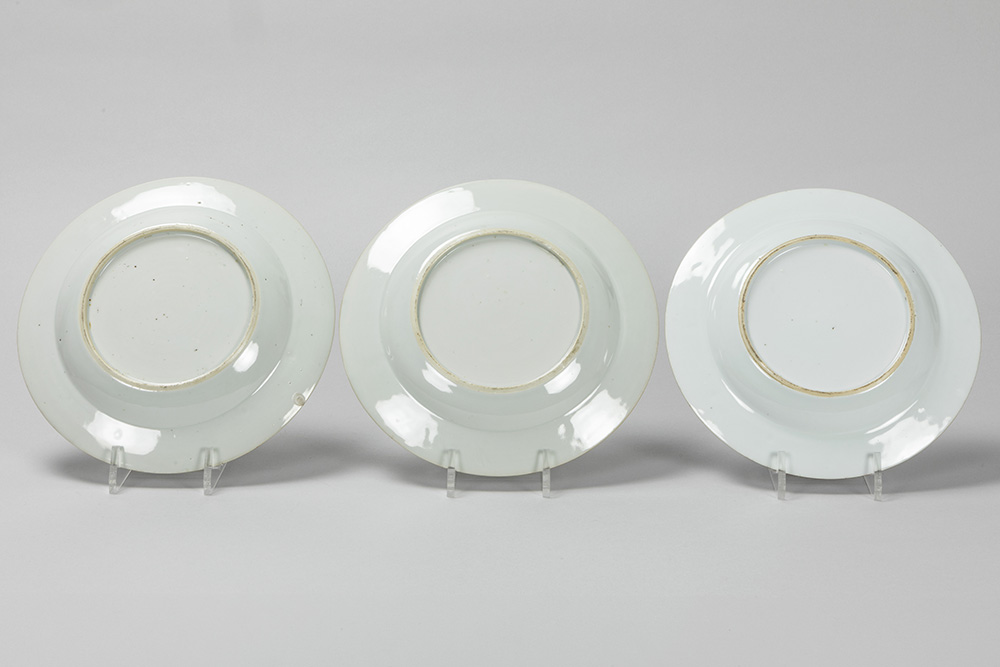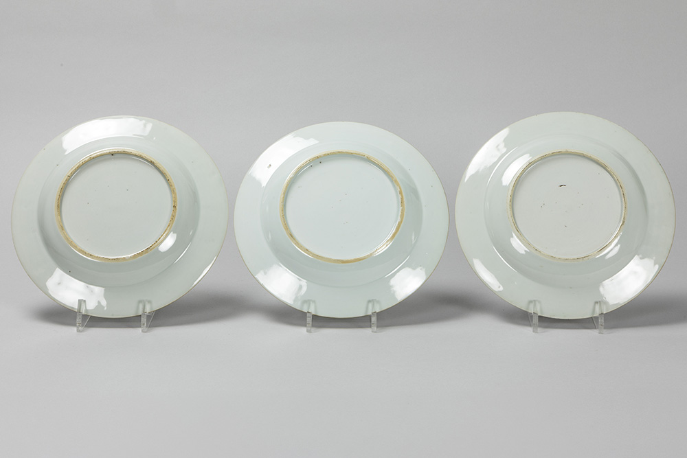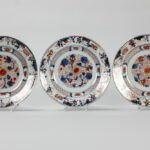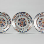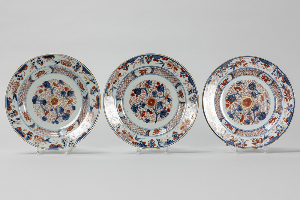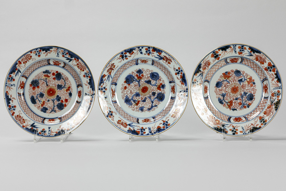 Serie van zes achttiende eeuwse Chinese borden in porselein met een Imari-landschapsdecor – diameter : 22,5 cm