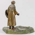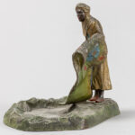 antique “Austria marked” Viennese orientalist style “Rug seller” sculpture in cold-painted metal