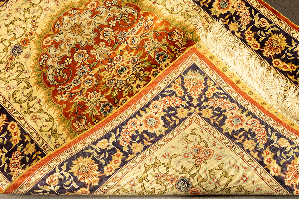 Zeer fijngeknoopte Sino-Kirman in zijde op zijde met een gedetailleerd florale medaillontekening – 93 x 63 cm
