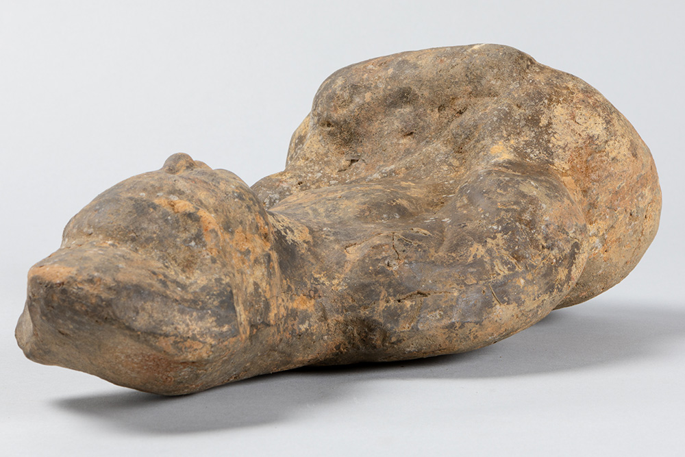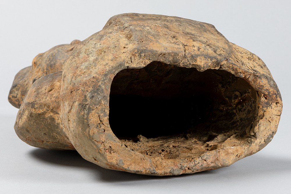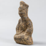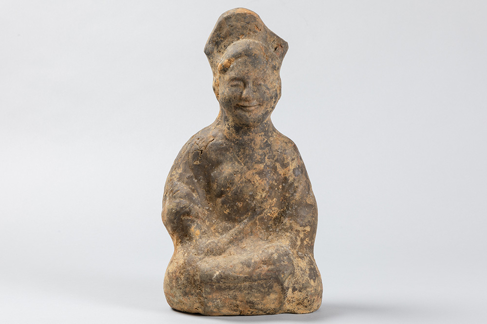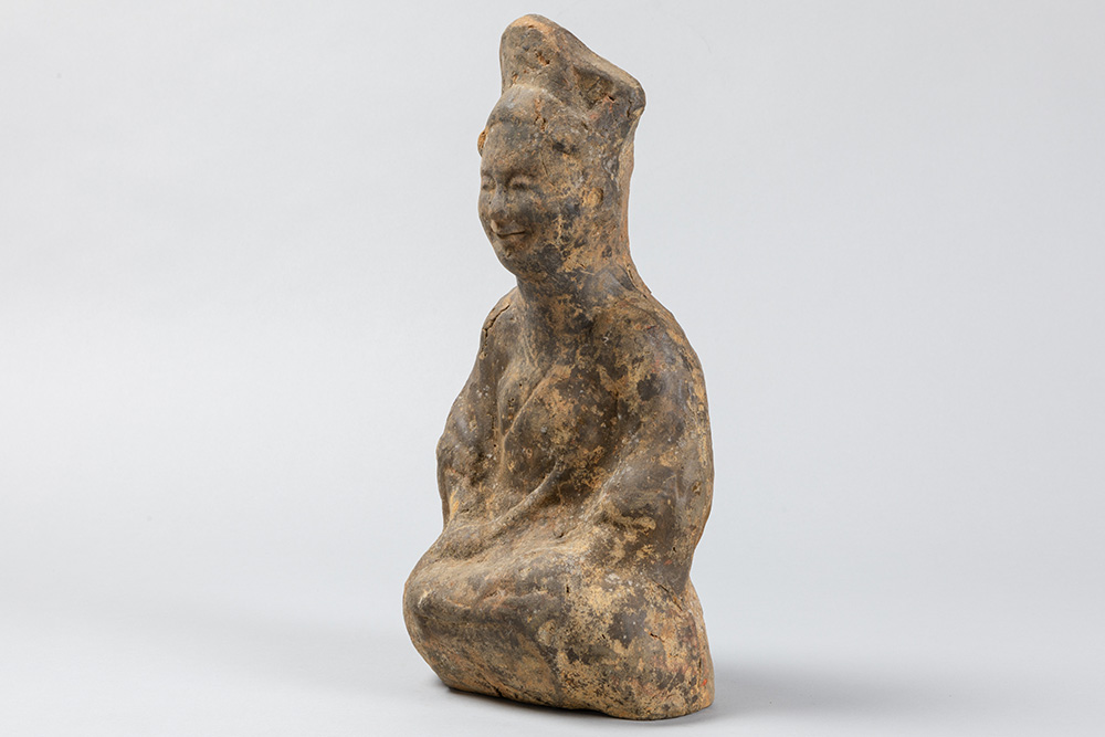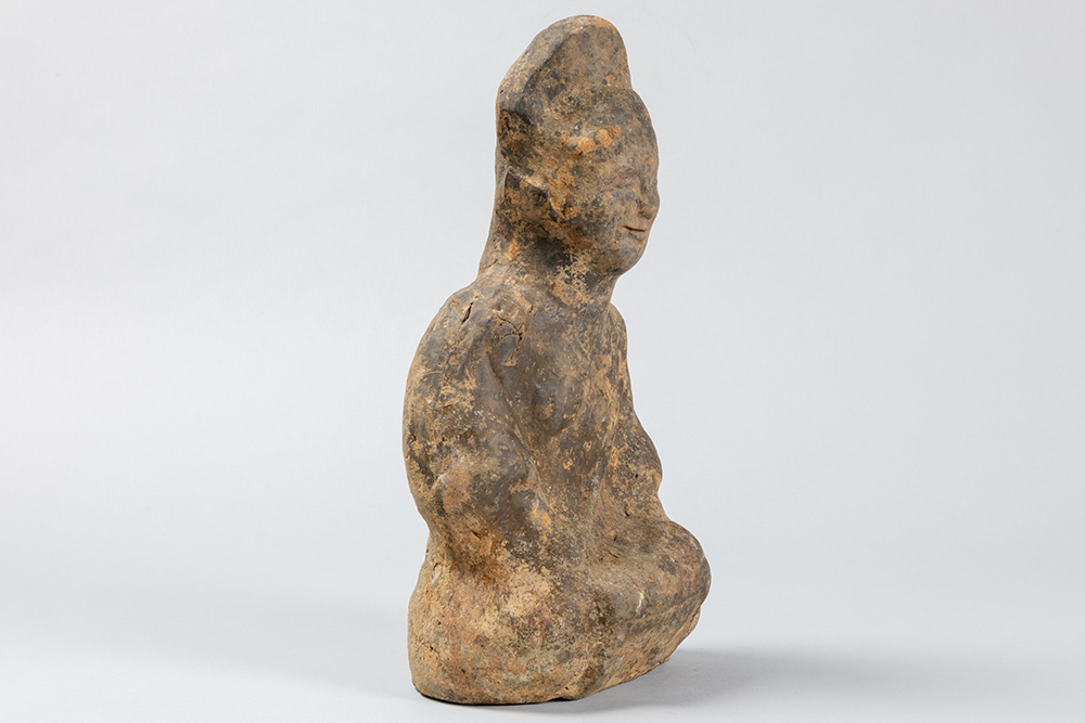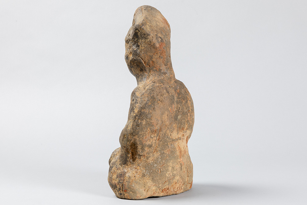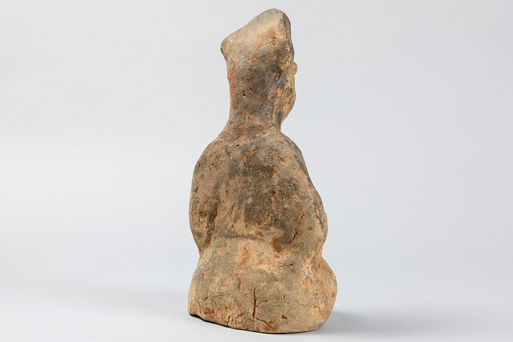 CHINA – HAN – DYNASTIE (206 voor – 220 na Christus) 165 in aardewerk : “Zittende hoveling” – hoogte : 32,5 cm