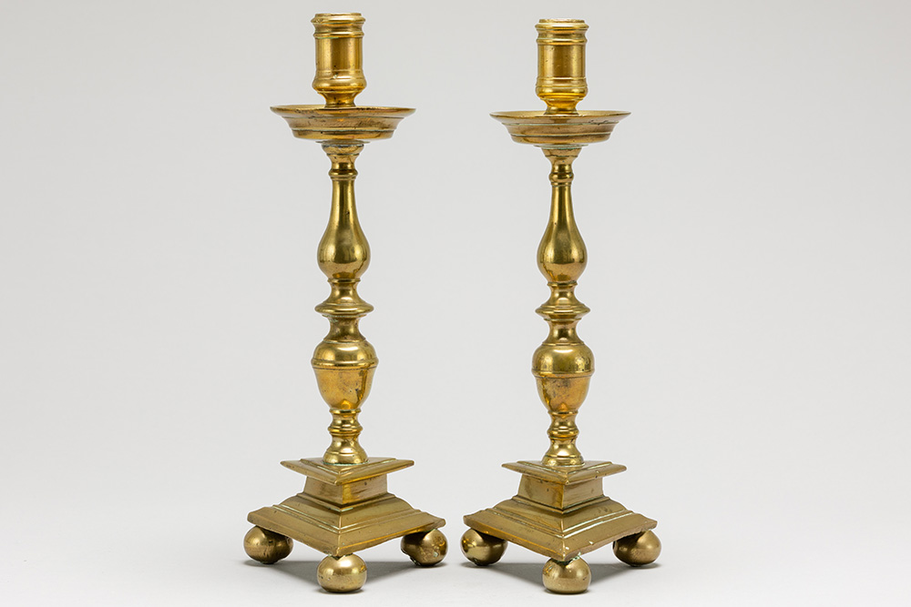 pair of good 17th Cent. brass candlesticks