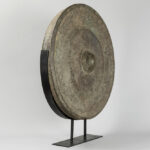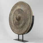 VIETNAM / CENTRALE HOOGLAND – 19° EEUW zgn “nippelgong” van de Jorai in messing (legering van koper en zink) – diameter : 69 cm – met standaard Dergelijke gongen werden gebruikt door lokale musici bij feestelijkheden in de provincie Gai-rai.