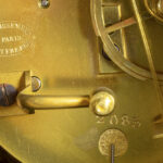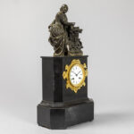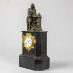 antique clock with case in black marble topped with a ‘Shakespeare’ sculpture in bronze & with a “Ets de Paris Miroy Frêres – Médaille d’or Japy frêres” signed work
