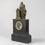 Antieke klok in zwarte marmer bekroond met een ‘Shakespeare’ sculptuur in brons en met werk getekend “Ets de Paris Miroy Frêres – Médaille d’or Japy frêres” – hoogte : 53 cm – ca 1850