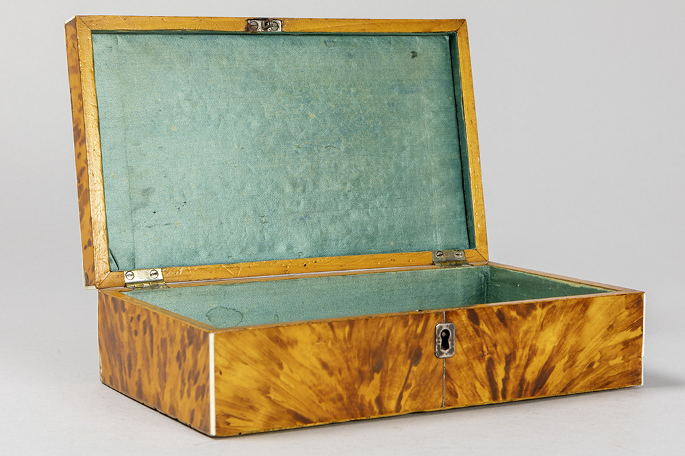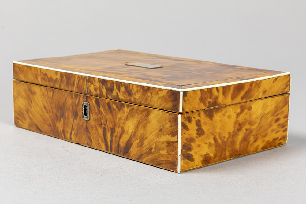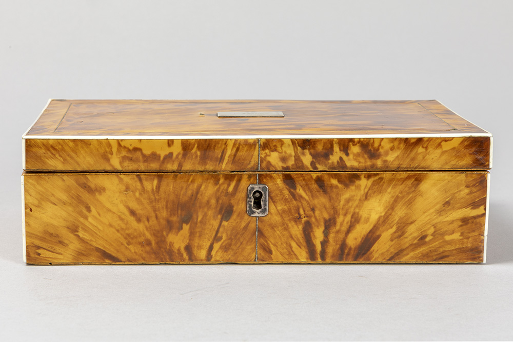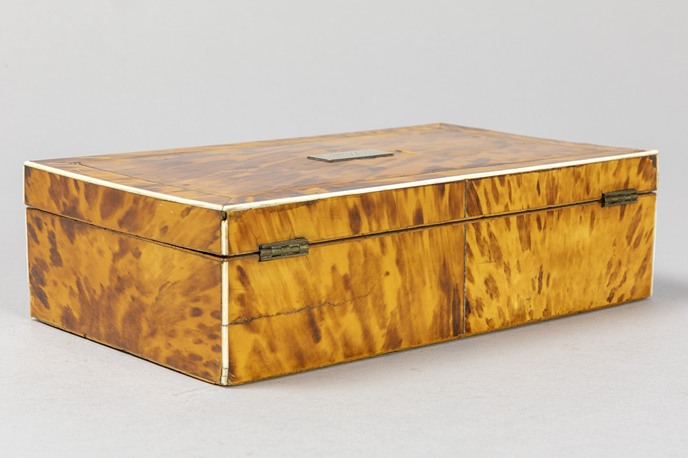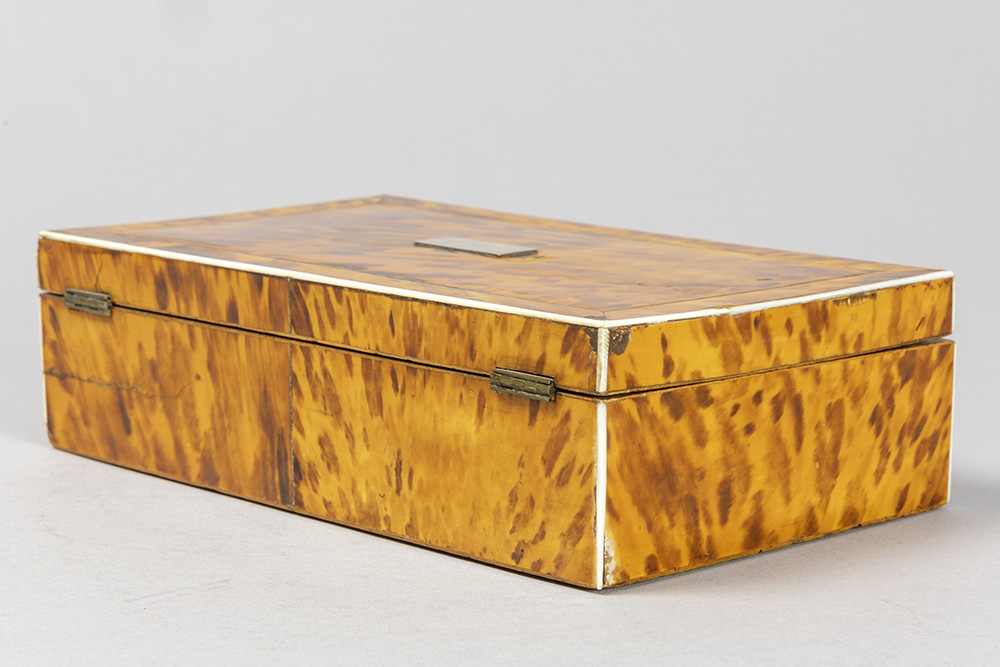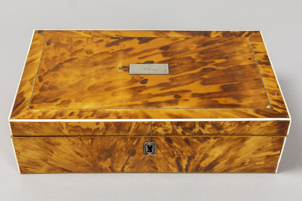 antique box in tortoiseshell with “Alice” name plate in silver