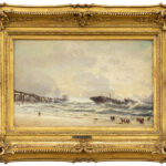 DURAND-BRAGER JEAN-BAPTISTE HENRI (1814 – 1879) olieverfschilderij op doek : “Marine met figuren op het strand” – 32,5 x 55 getekend