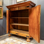 18th Cent. Dutch (“pillow”) armoire in burr of walnut, walnut, ebony and ebonized wood with two doors with typical “pillows”