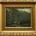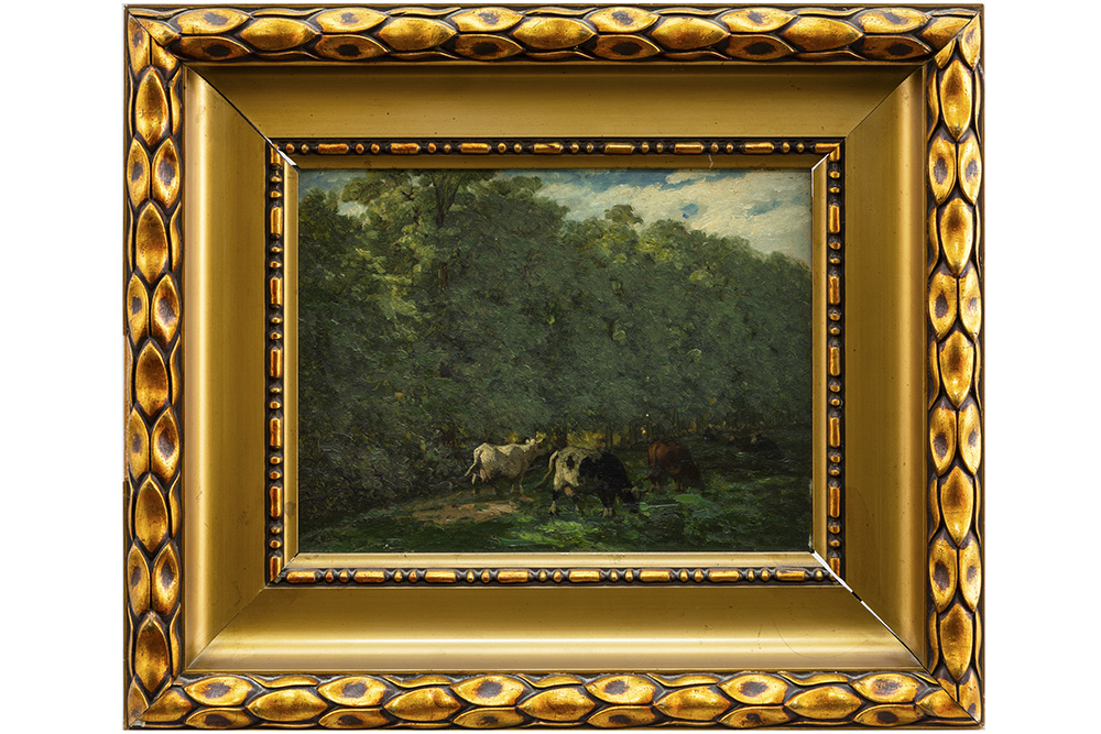 ROBBE LOUIS, FRANÇOIS, DOMINIQUE (1806 – 1887) olieverfschilderij op paneel : “Koeien in een weide” – 24 x 32 getekend en met lakzegel op verso