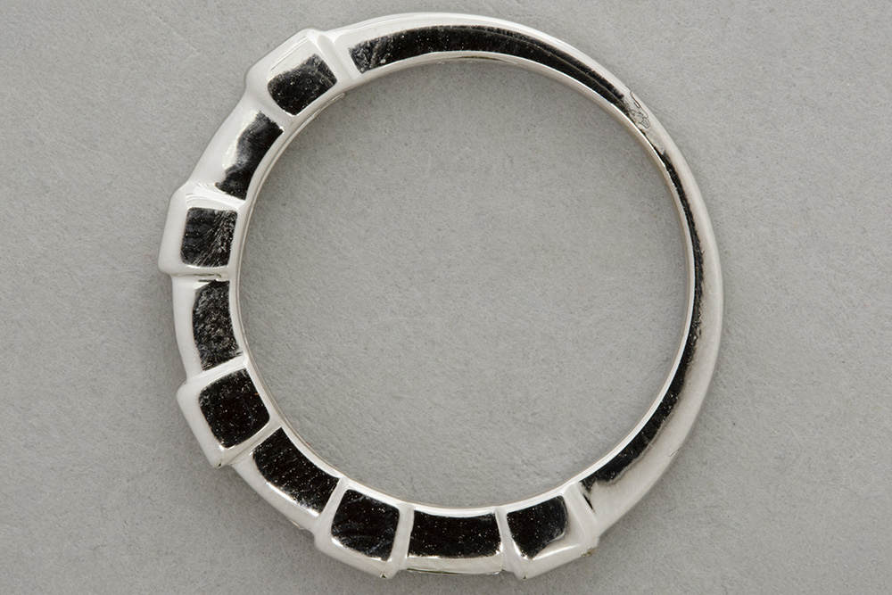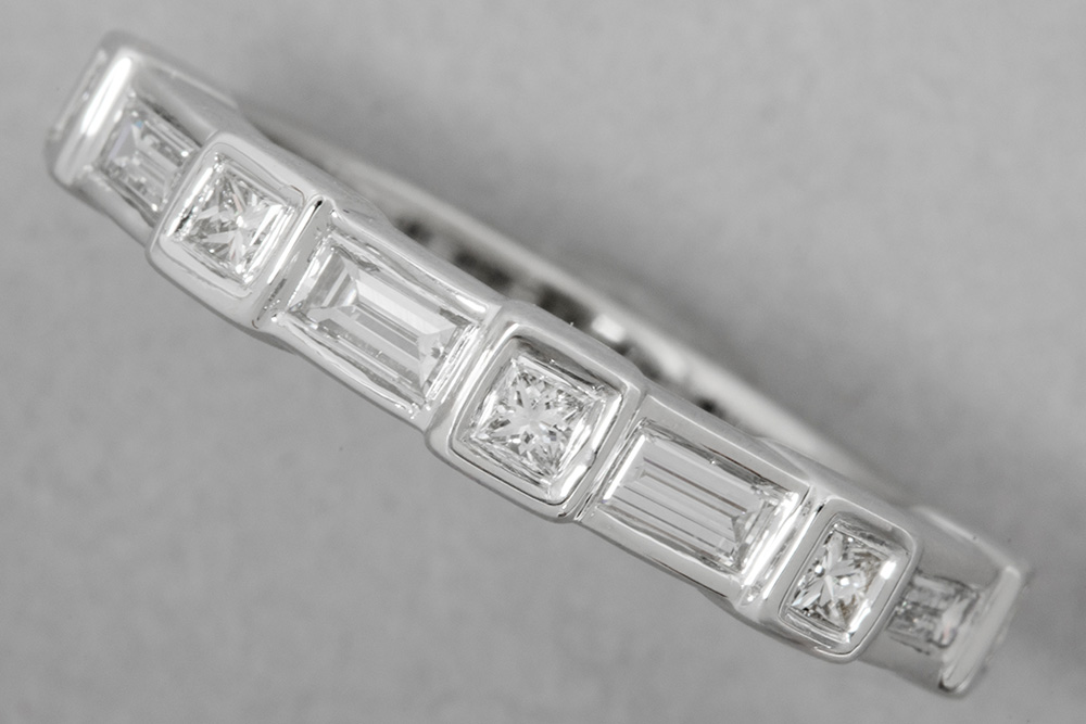 ring in white gold (18 carat) with ca 0,40 carat of very high quality baguette and princess’ cut diamonds – size 54