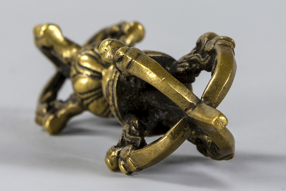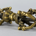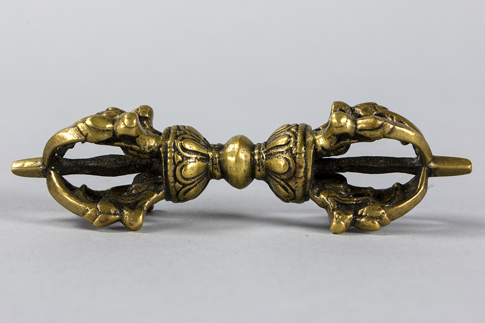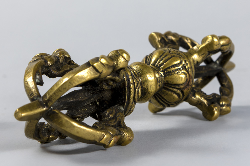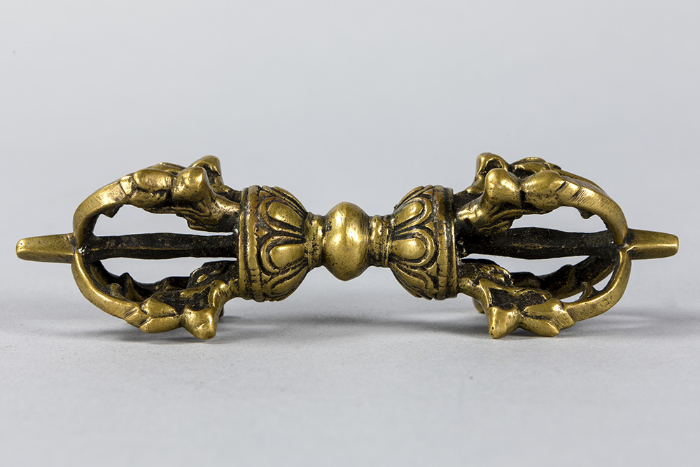 Tibeto-Nepalees ritueel object, een zgn “vajra”, in een koperlegering – lengte : 11,5 cm