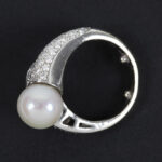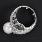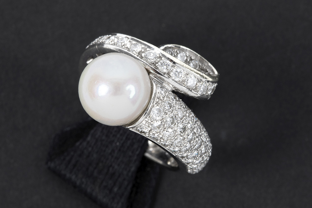 Ring met een soort slangenmodel in witgoud (18 karaat) bezet met een witte parel met een diameter van 10 mm (als kop) en met ca 1,20 karaat blauwwitte (E/F) kwaliteitsbriljant (Vs/Si) – 11,2 gram