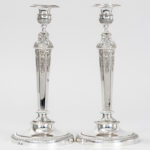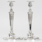 pair of antique French François Durand signed Empire style candlesticks in marked silver from Paris