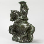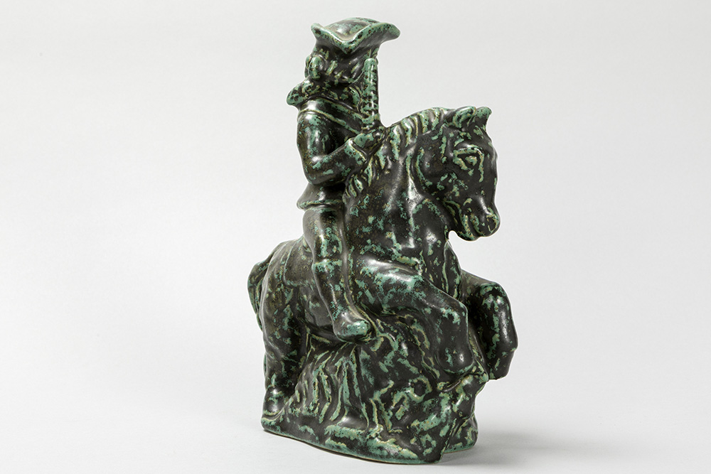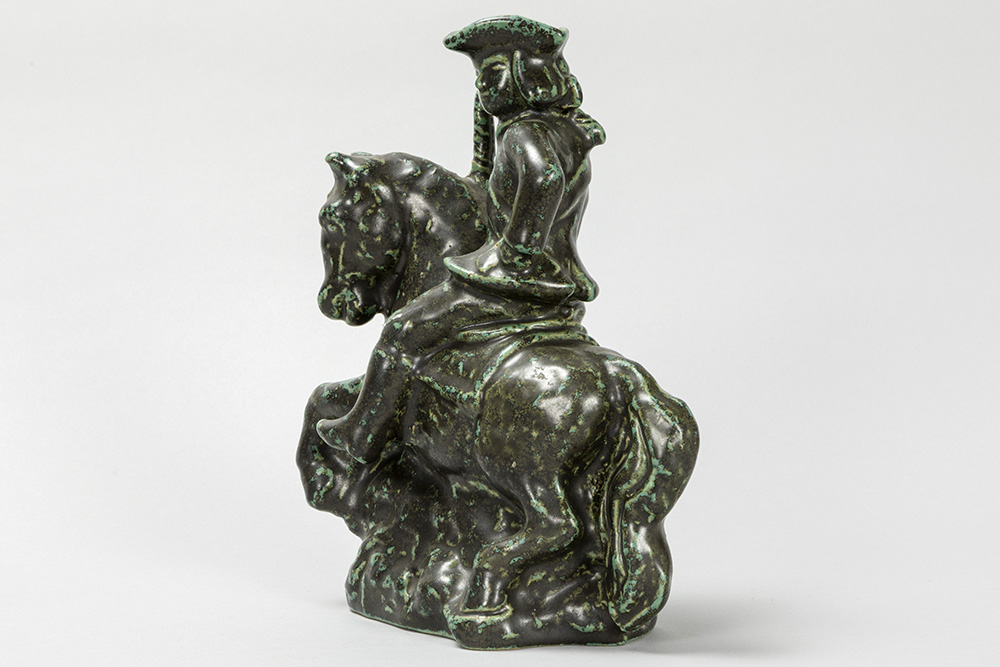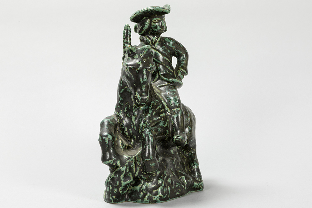 ERIK HJORTH (1906 – 1982) Deense Art Deco-sculptuur in gemerkte grès : “Ruiter te paard” – hoogte en breedte : 23 en 20 cm getekend