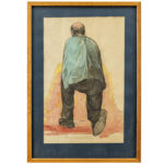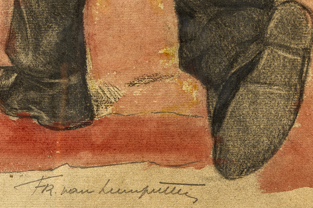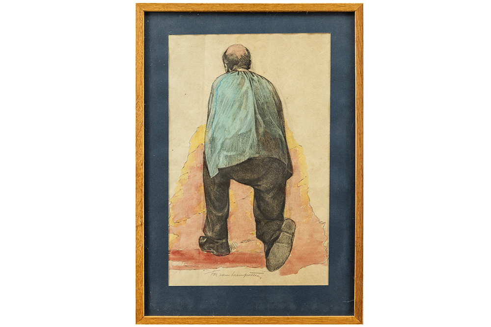 VAN LEEMPUTTEN FRANS (1850 – 1914) werk in gemengde techniek : “Op de rug geziene knielend man” – 41 x 26 getekend