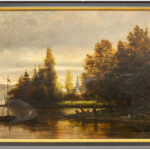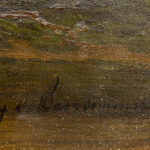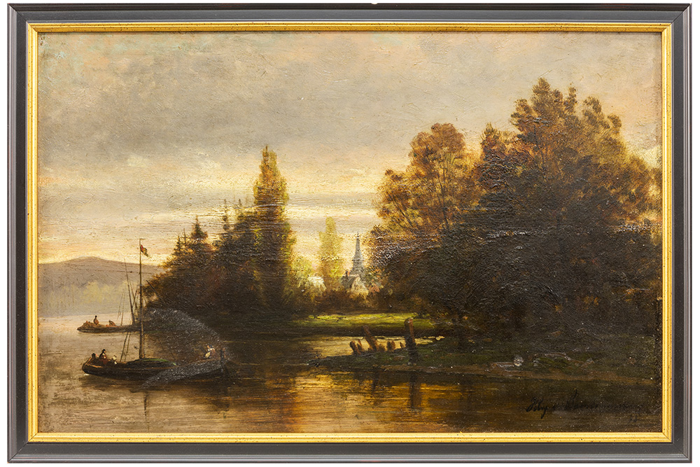 DE BAERDEMAEKER FÉLIX (1836 – 1878) negentiende eeuws olieverfschilderij op paneel : “Landschap bij avondschemering” – 25 x 39 getekend en gedateerd (18)73