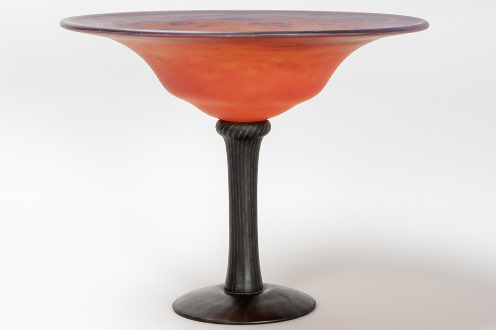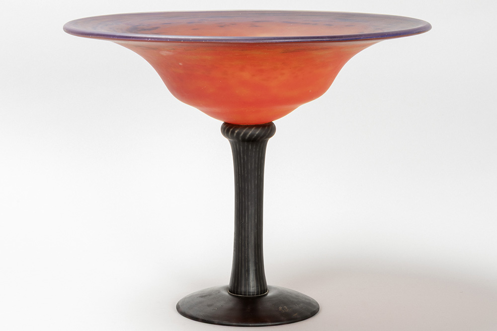 SCHNEIDER vrij grote coupe op voet in gemarmerde glaspasta – hoogte en diameter : 30 en 37 cm getekend