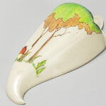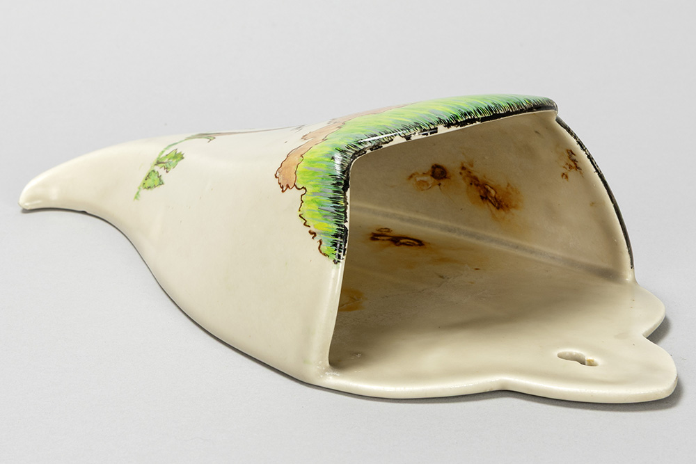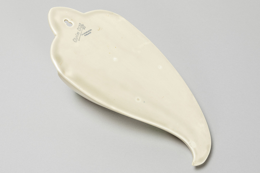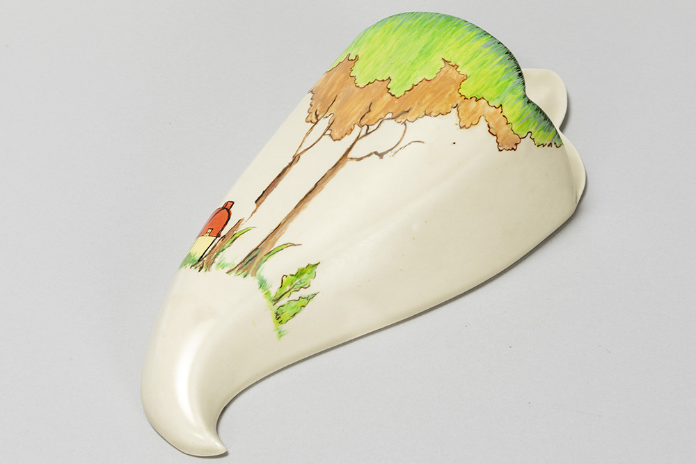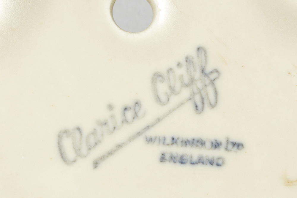 Clarice Cliff signed Art Deco wall vase in ceramic with a polychrome decor with a house in a landscape