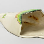 CLARICE CLIFF (1899 – 1972) Art Deco-wandvaasje in faience met een polychroom landschapsdecor met huis – hoogte : 30,5 cm getekend