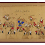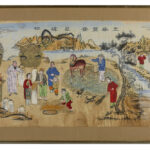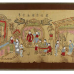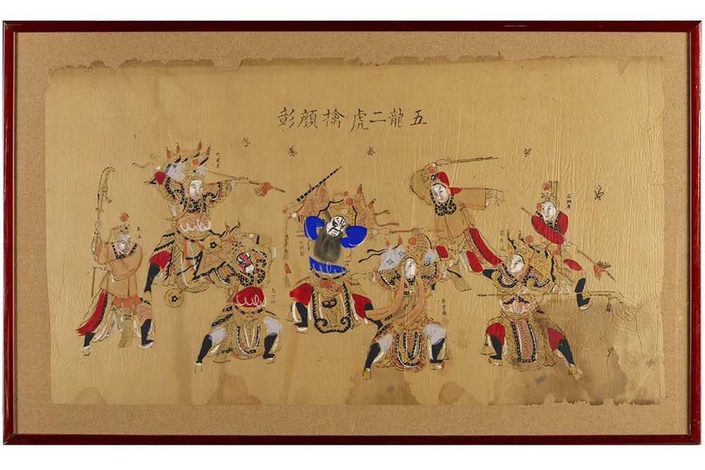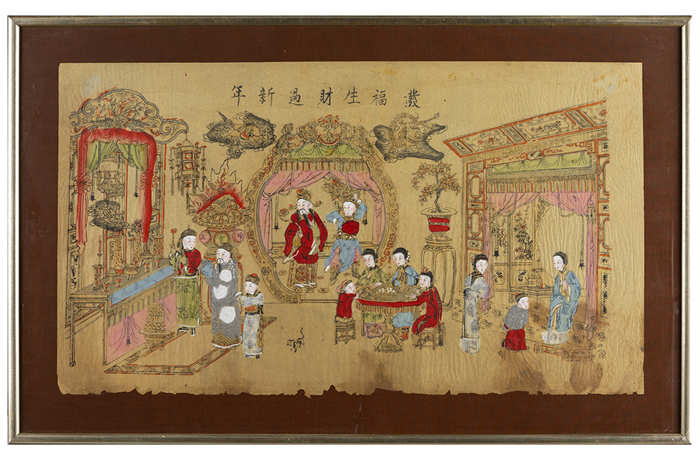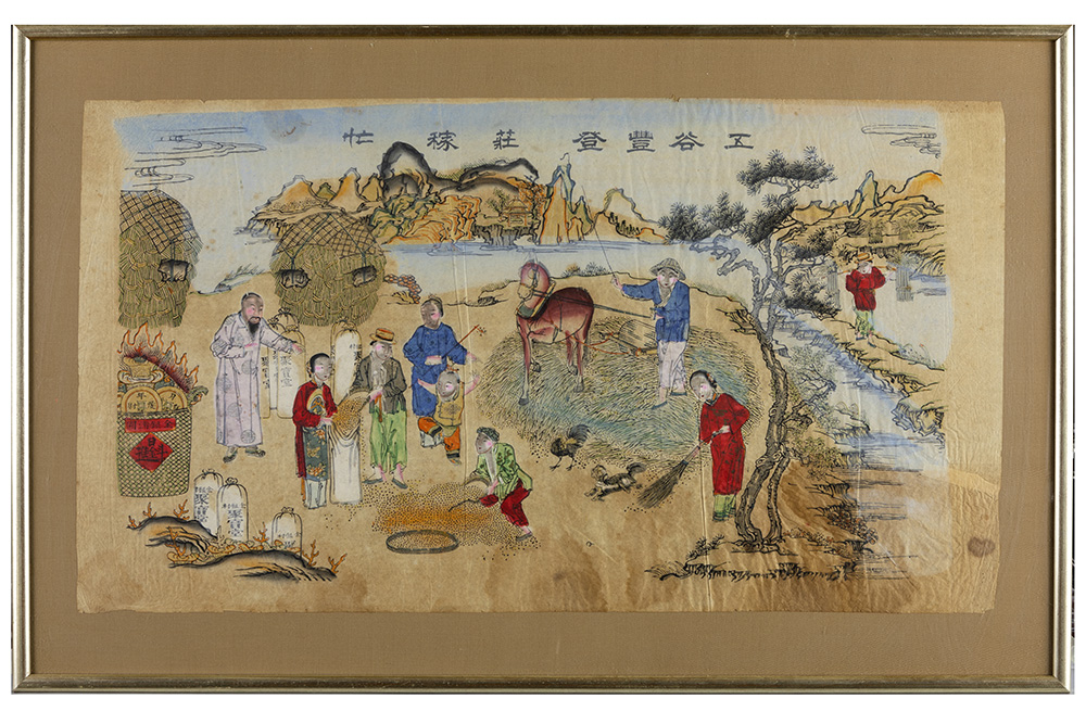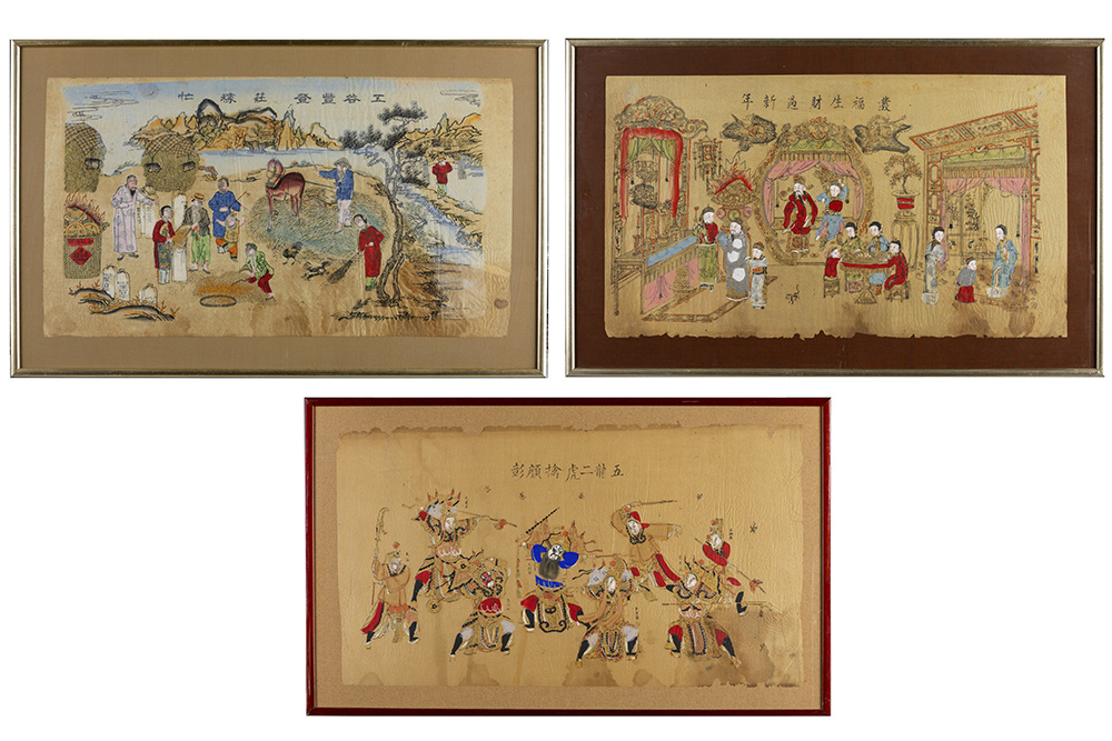 Lot van drie Chinese schilderingen – 61 x 107, 61 x 109 en 62 x 108 cm