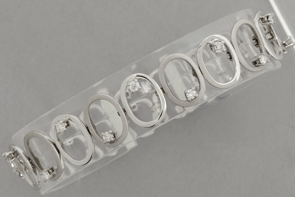 modern design bracelet in white gold (18 carat) with ca 0,75 carat of high quality brilliant cut diamonds