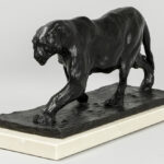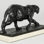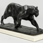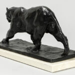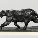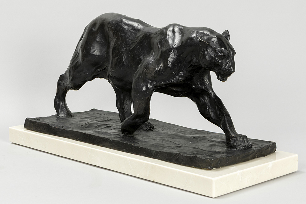 BUGATTI REMBRANDT (1885 – 1916) – NAAR sculptuur in zwart gepatineerde brons n° E 2/8 : “Panthère marchant” – hoogte en breedte : 22 x 46 cm postume gieting met facsimilésignatuur met justificatie van de gieting