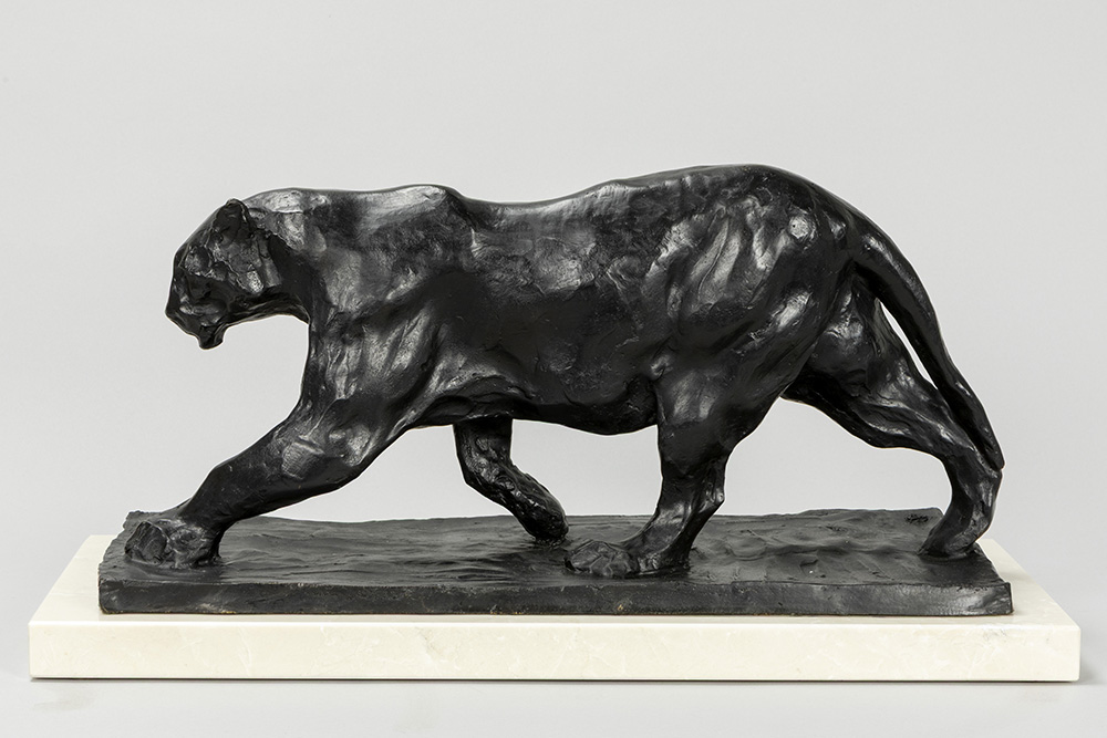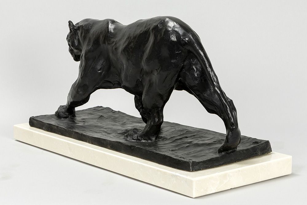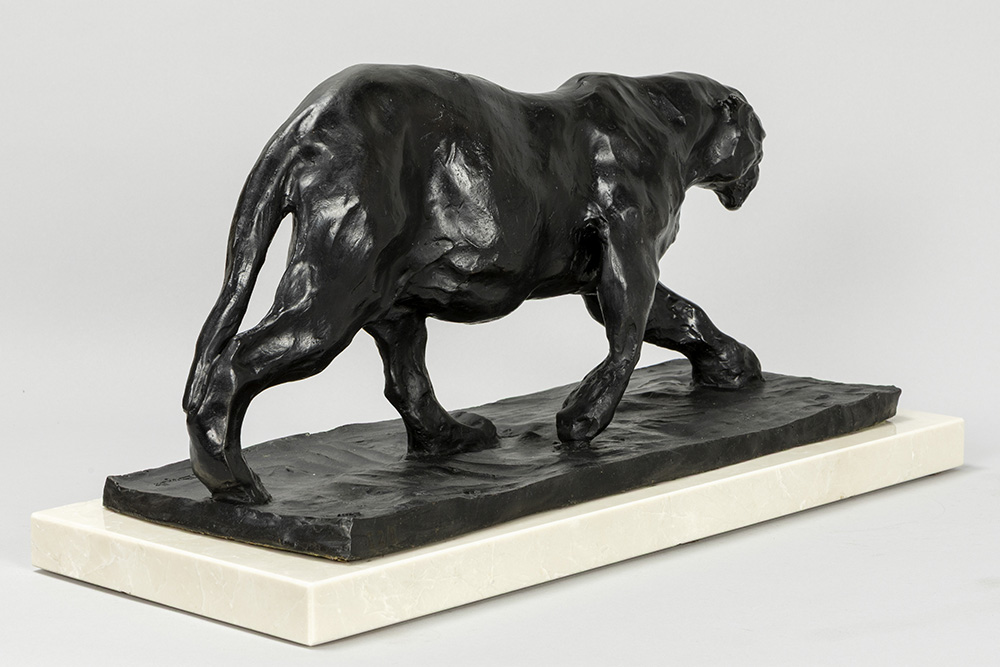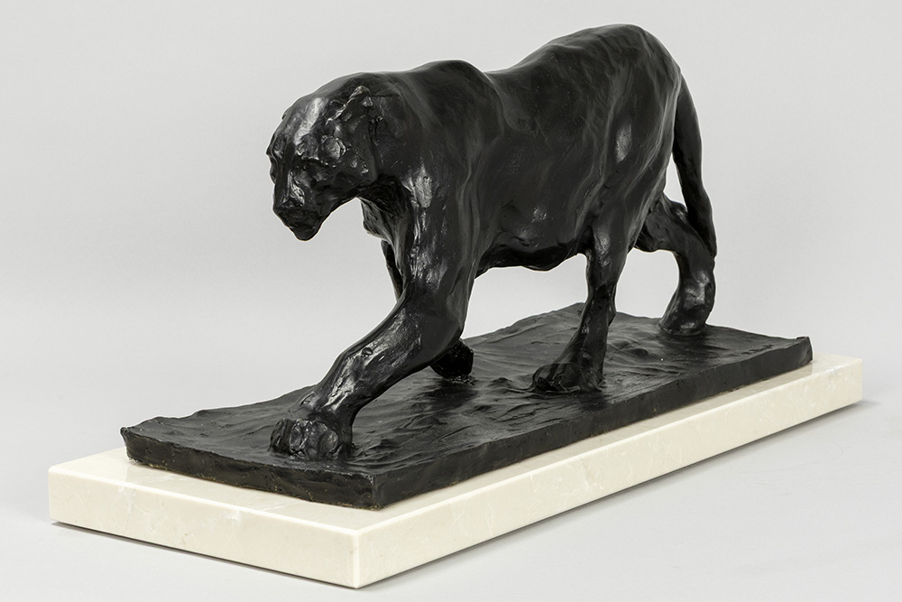 sculpture in bronze after Rembrandt Bugatti’s “Marching panther” posthumous casting with facsimile signature, numbered E 2/8 and with justification of the casting