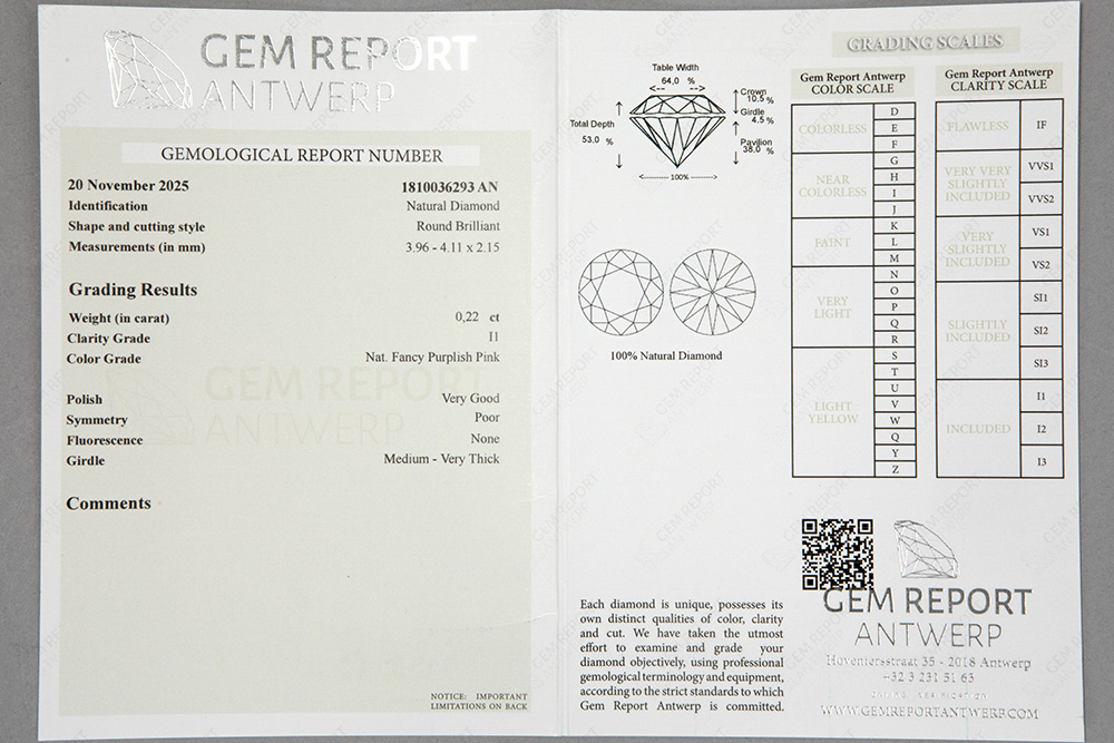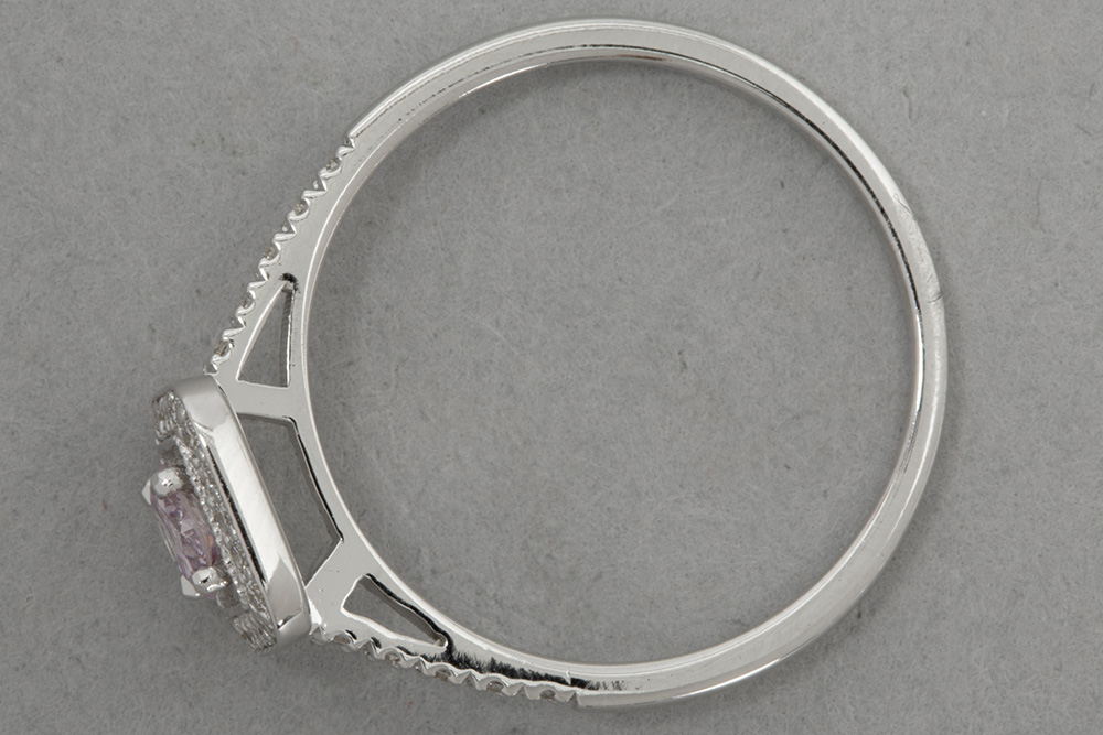 ring in white gold (18 carat) with a 0,22 carat natural fancy pink high quality brilliant cut diamond surrounded by 0,20 carat of very high quality brilliant cut diamonds with GEM certificate for the pink diamond