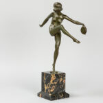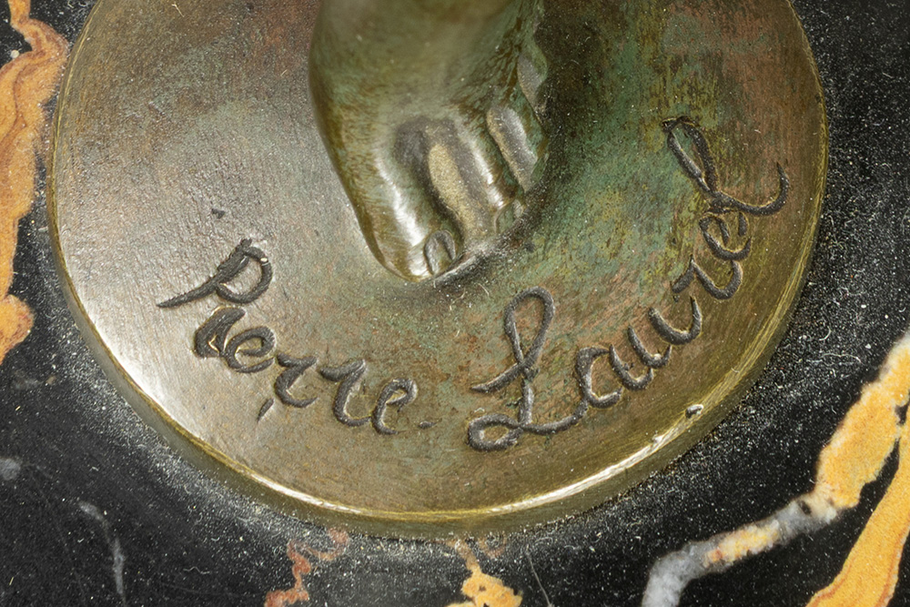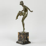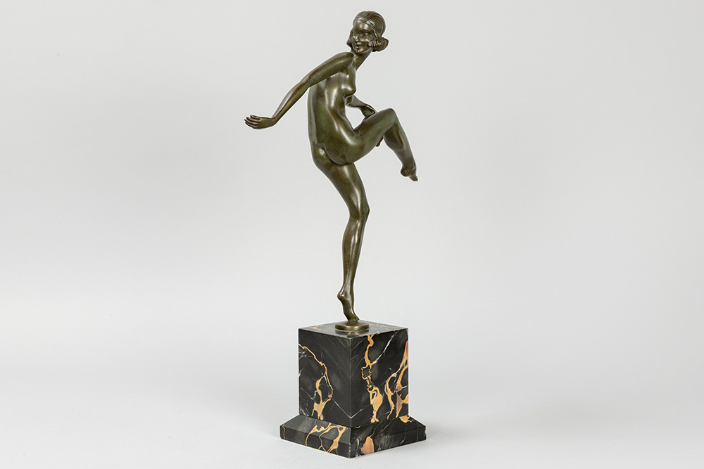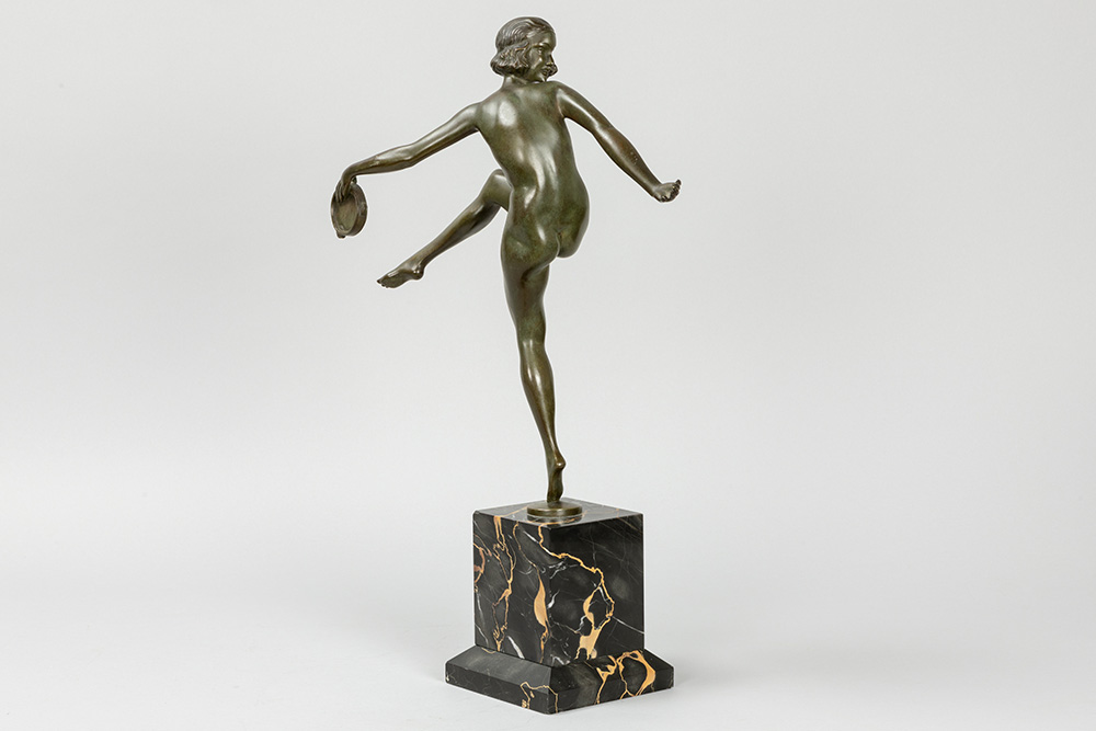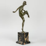 Pierre Lefaguays Art Deco “Dancing Girl” sculpture in bronze on a base in typical marble – signed Laurel
