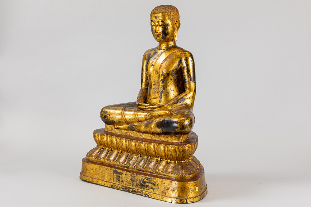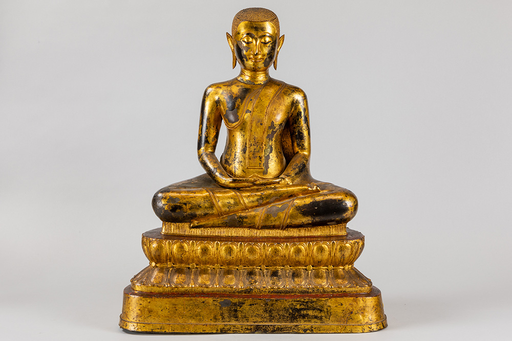 19th Cent. Siamese Rattanakosin period “Buddha Dhyana Asana” sculpture in bronze with original gilding and lacquer
