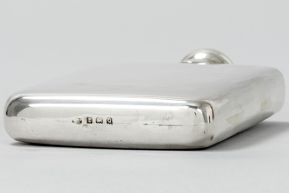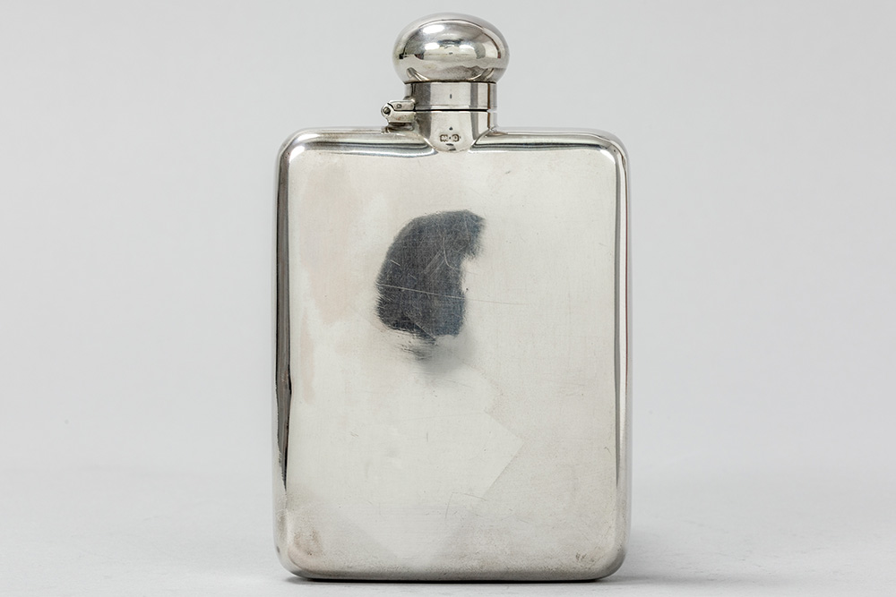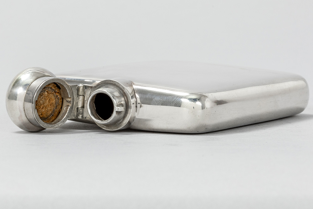 an Art Deco pocket flask in marked silver