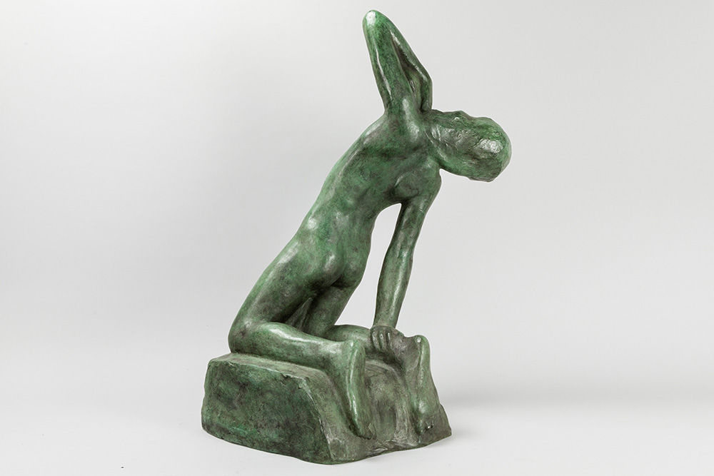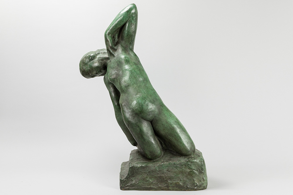 20th Cent. Belgian sculpture in bronze with a green patina – signed George Minne posthumous cast