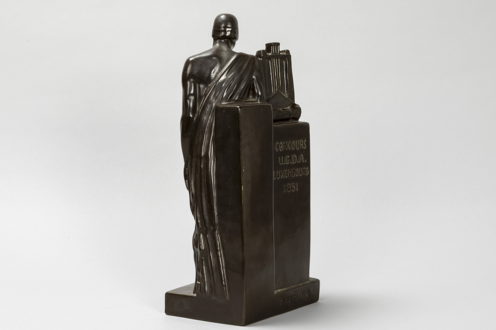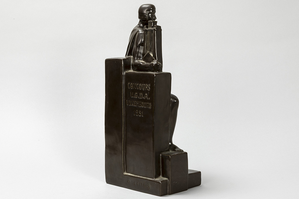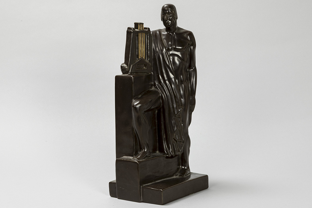 DE CLERCK OSCAR (1892 – 1968) sculptuur in bruine faience, gemerkt “Villeroy & Boch” – hoogte : 36 cm getekend